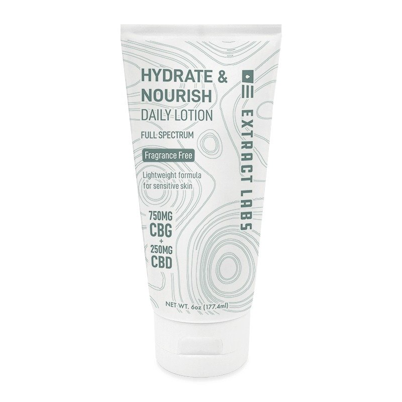 With 750 mg of CBG and 250 mg of CBD, the extract labs hydrate & nourish daily lotion has a lightweight, fragrance-free composition. Ideal for all skin types—sensitive skin included. This hydrate and nourish daily lotion is a flawless combination of natural remedies in a clear and uncomplicated recipe.